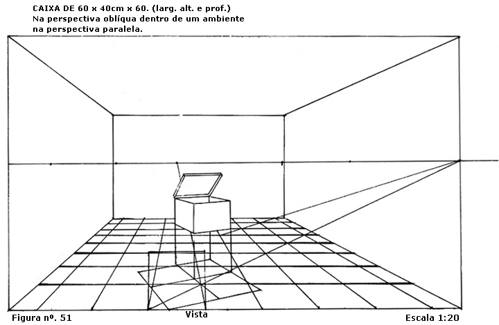 CONSTRUÇÃO DE UMA CAIXA COM TAMPA LEVANTADA, NA PERSPECTIVA OBLÍQUA.